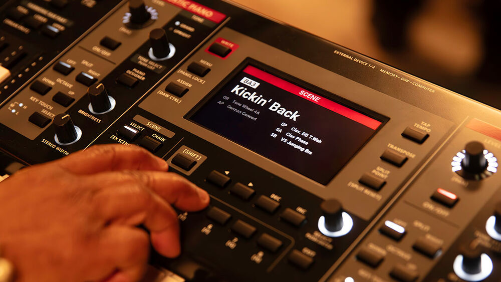 • Electric Piano: This newly developed EP engine includes tine, reed, digital piano, and clavinet instruments crafted with the latest SuperNATURAL advancements. Split, octave, detune, and key touch controls are available, plus a Sound Lift knob for cutting through dense band mixes. Selectable MFX, a tremolo effect, and an amp sim are also within easy reach.